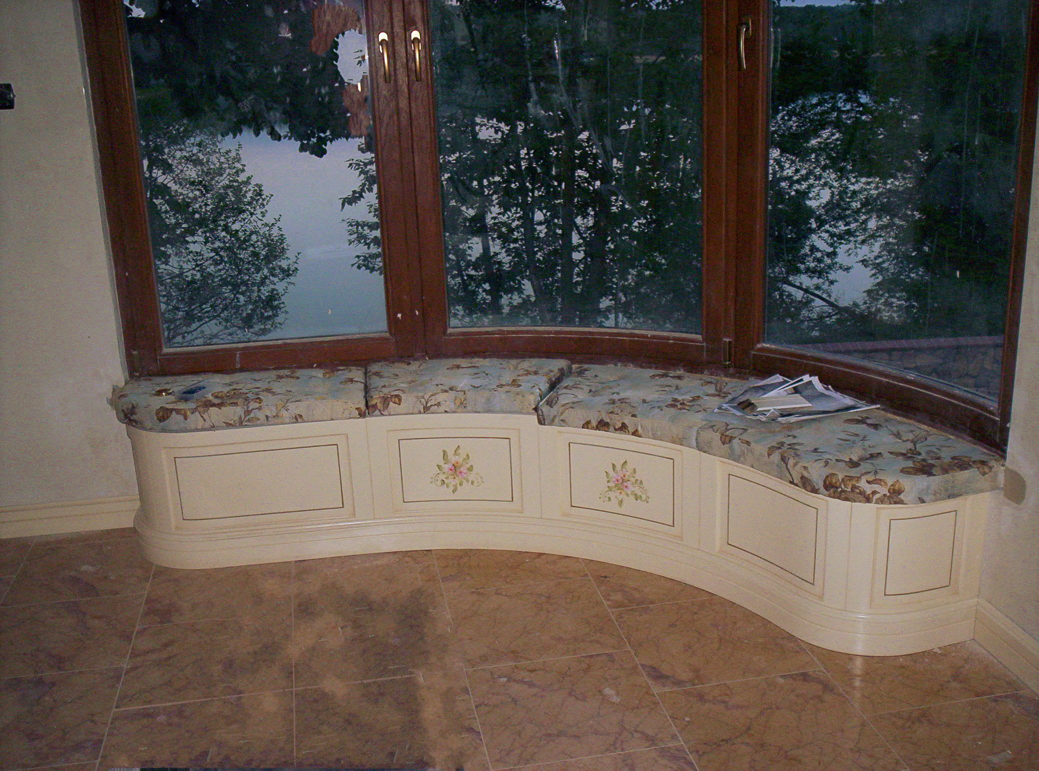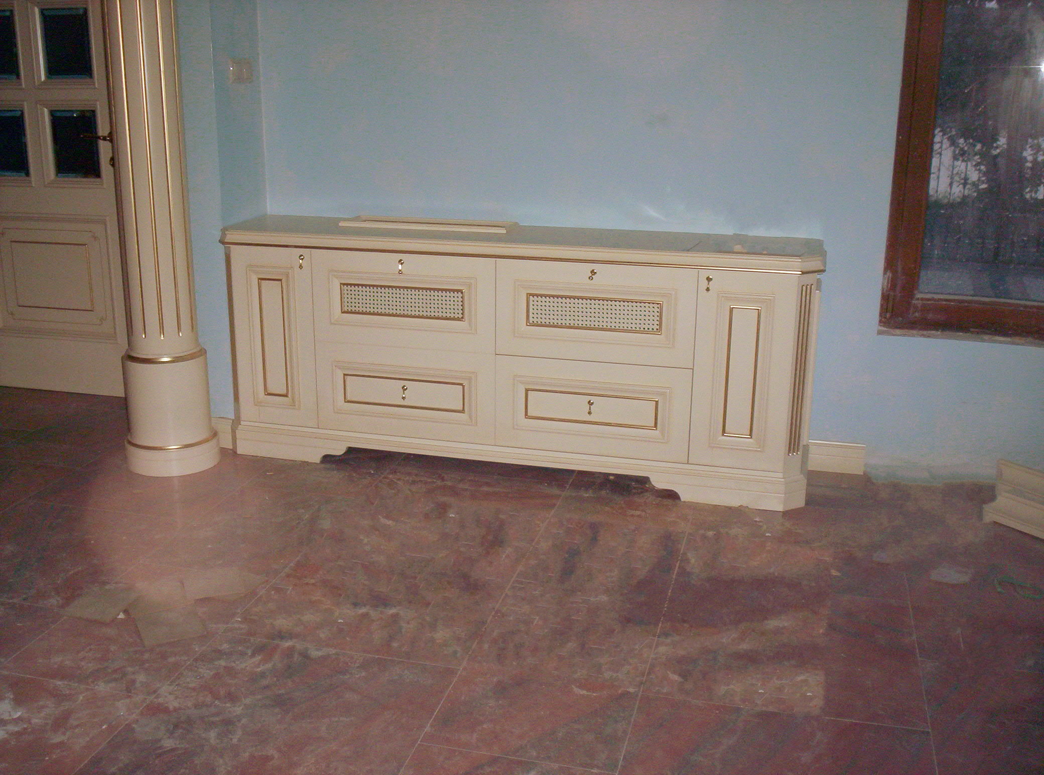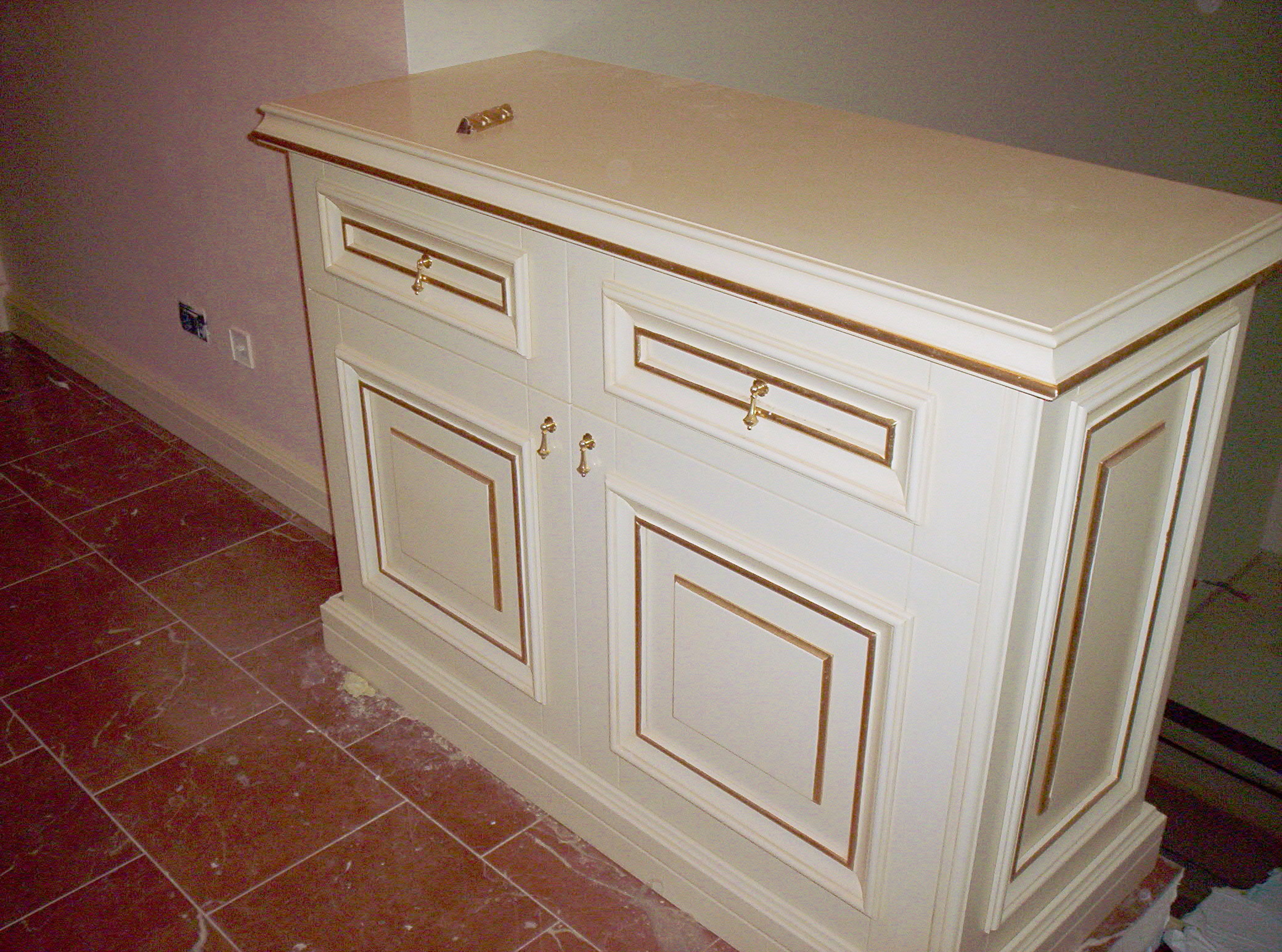 Arredamento barocco, con laccatura avorio patinata e finiture in foglia oro.