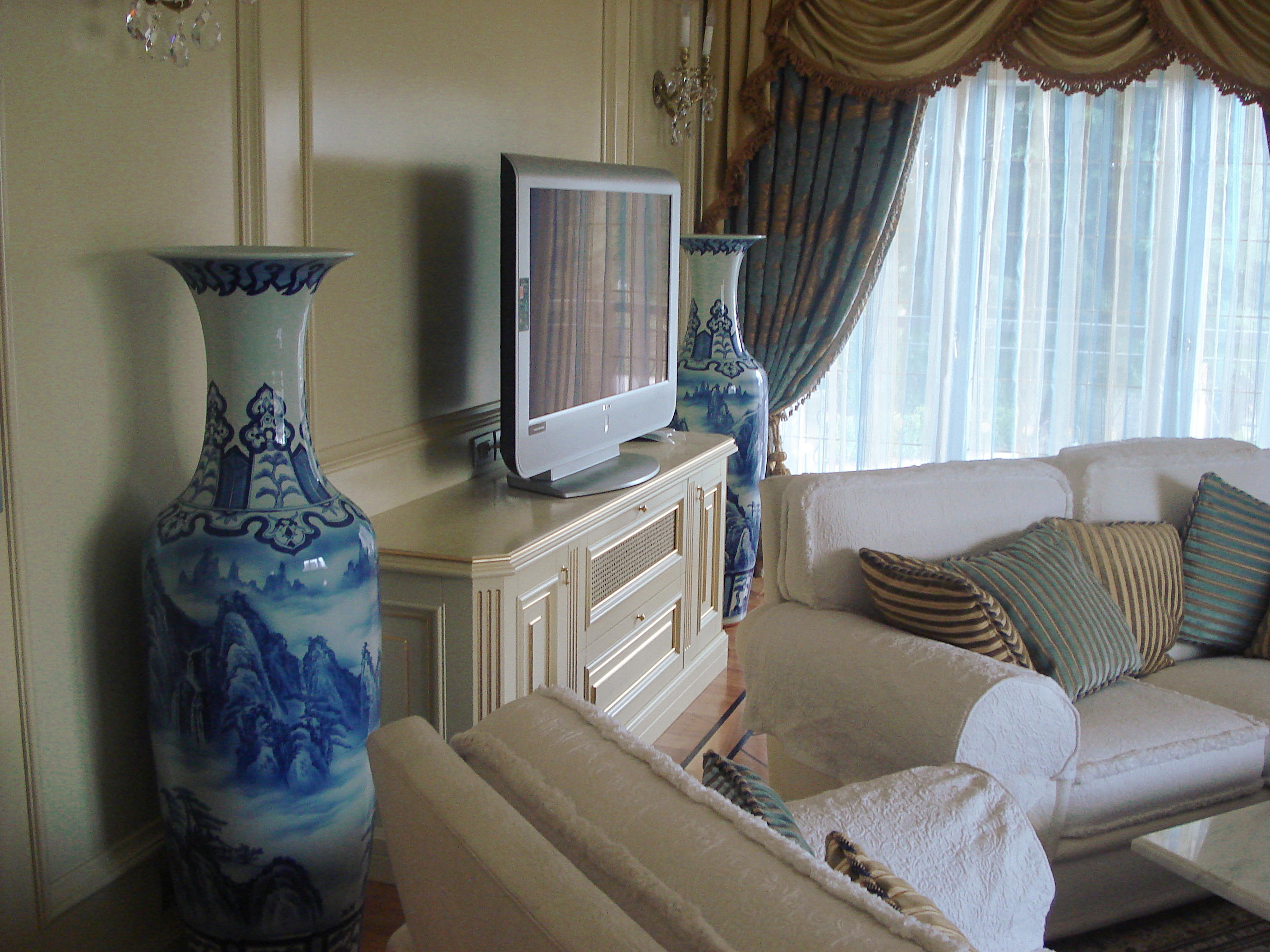 Arredamento barocco, con laccatura avorio patinata e finiture in foglia oro.