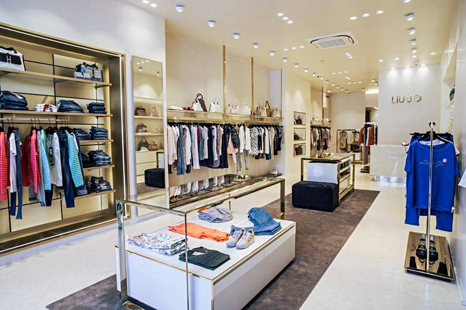 Realizziamo alcuni arredamenti per i negozi LIU JO, in accaio galvanizzato e arredi tecnologici laccati.